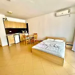 Предлагайки гледка към басейна, Гранд Камелия Холидей Комплекс в Слънчев бряг разполага с тераса с места за сядане и басейн. Картинг писта е на около 5 минути с кола от апартамента, докато Клуб "Какао Бийч" се намира на 5 минути път с кола.